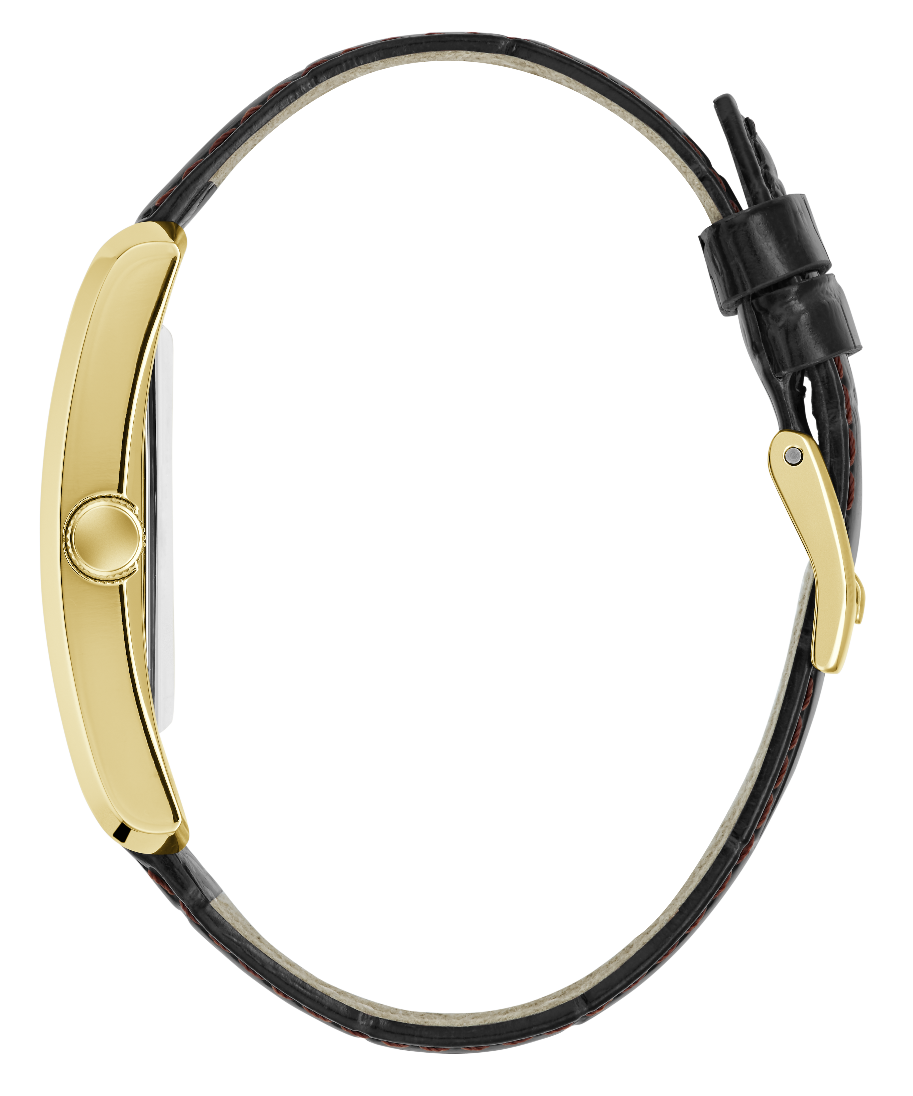 The brown croco-embossed leather strap brings in tailored texture that sharpens the overall silhouette.