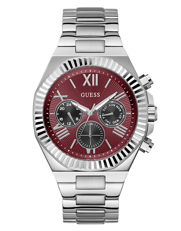 Ignite passion with a piece that embodies strength, style and desire. Designed for presence and crafted to impress, this men’s 44 mm timepiece features a deep red sunray dial with a three-subdial multifunction layout for added precision and purpose.