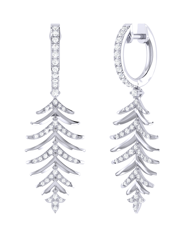 14ct White Gold Diamond Hoop Drop Earrings Brilliant Cut Diamonds