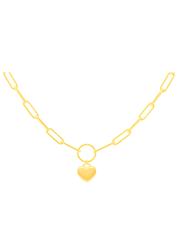 10ct Yellow Gold 47.7cm Paper Clip Chain with Heart
