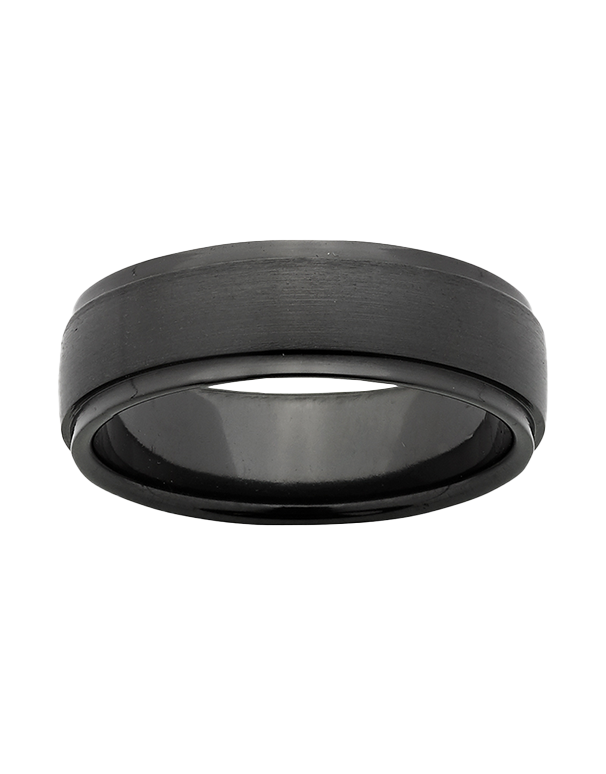 Made from black Zirconium, featuring a central sanded finish with polished edges, 7mm width.  Various sizes available.