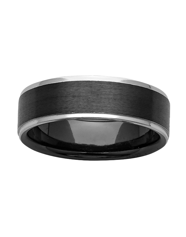 | Ziro Collection Ring Specify your ring size at checkout The ring features polished natural zirconium edges and a black zirconium centre with a sanded finish, 7mm width. Various sizes available. Zirconium is naturally a hard, lustrous, silvery coloured metal which is produced from the mineral Zircon (ZrSiO4) which turns black when exposed to extreme heat. The metal is extremely corrosion resistant due to the formation of a stable oxide film and is unaffected by most acids and alkalis. It will not tarnish and is completely hypoallergenic. |