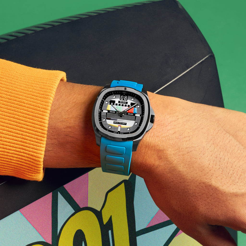 Band/Bracelet Type: Stainless steel with anthracite PVD coating, with additonal blue and yellow rubber straps