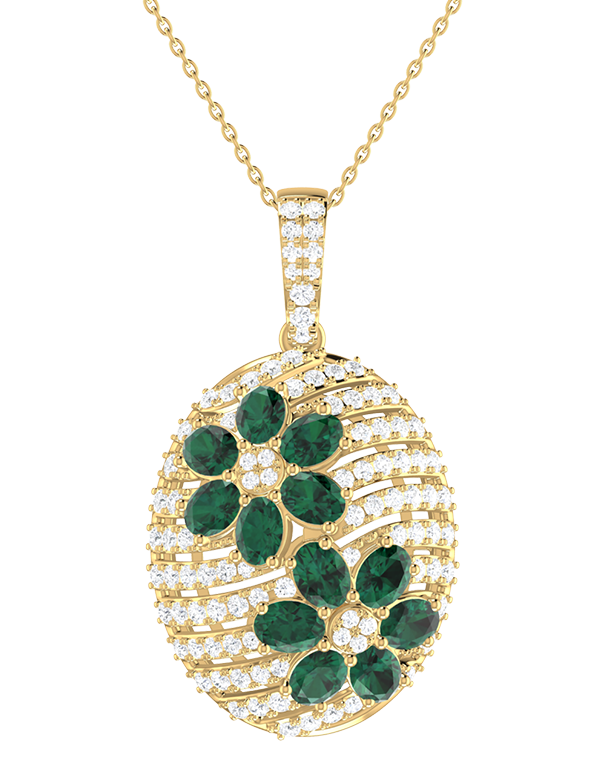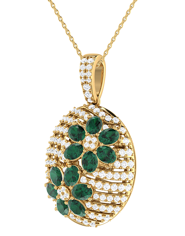 Emerald Pendant - 14ct Yellow Gold Natural Emerald & Diamond Pendant - 790597