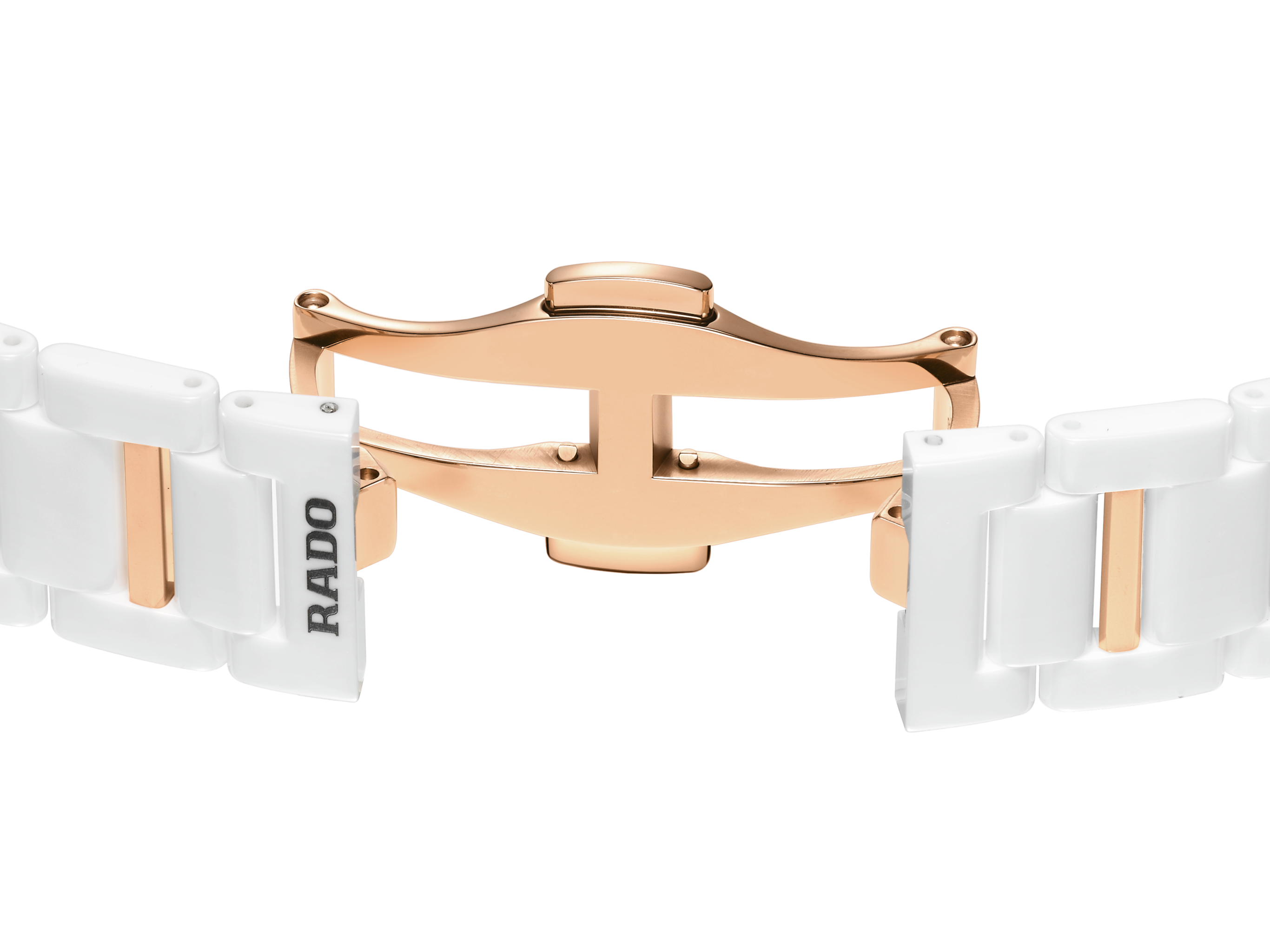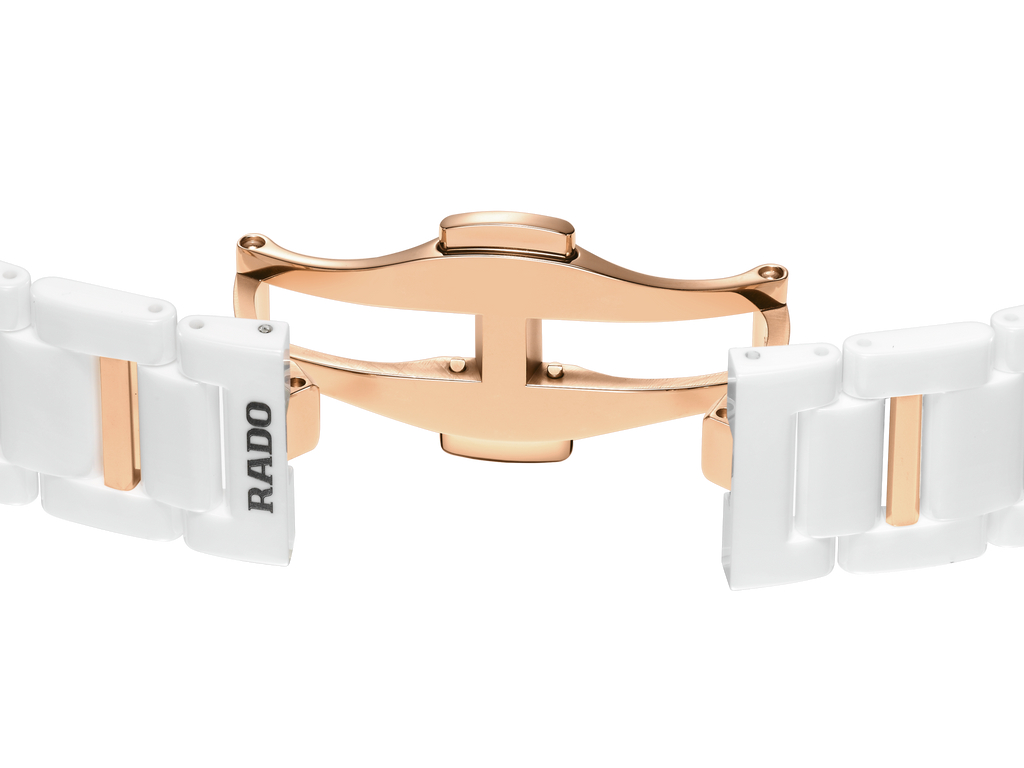 Bracelet: Polished white high-tech ceramic with rose gold PVD-coated elements